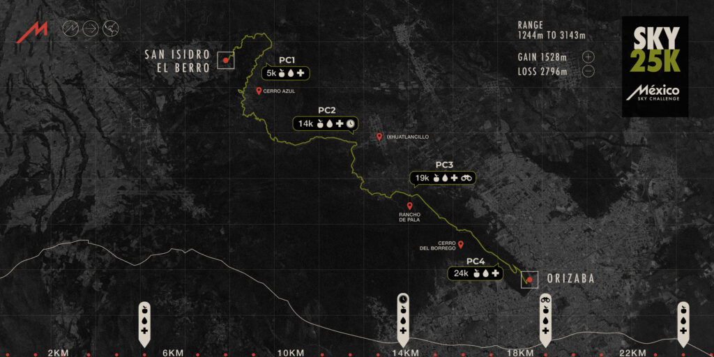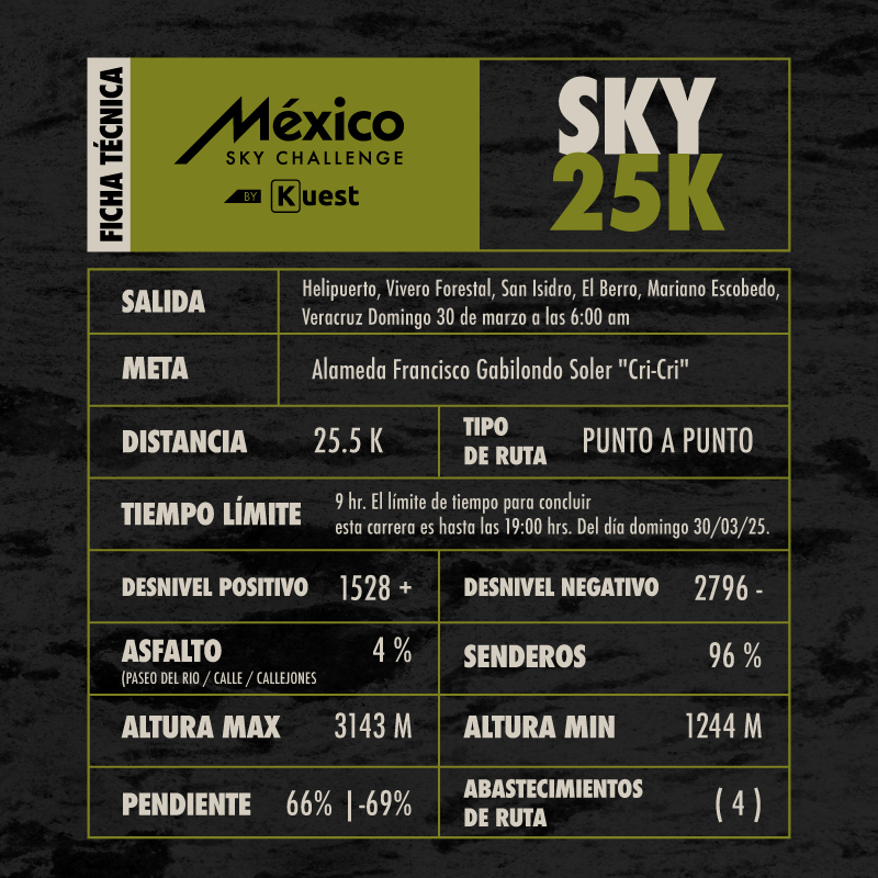 The 25 km route of the “Mexico Sky Challenge” is a unique experience that challenges runners to exceed their limits in an environment of natural beauty and cultural richness, symbolizing the best of Orizaba and Mexico.